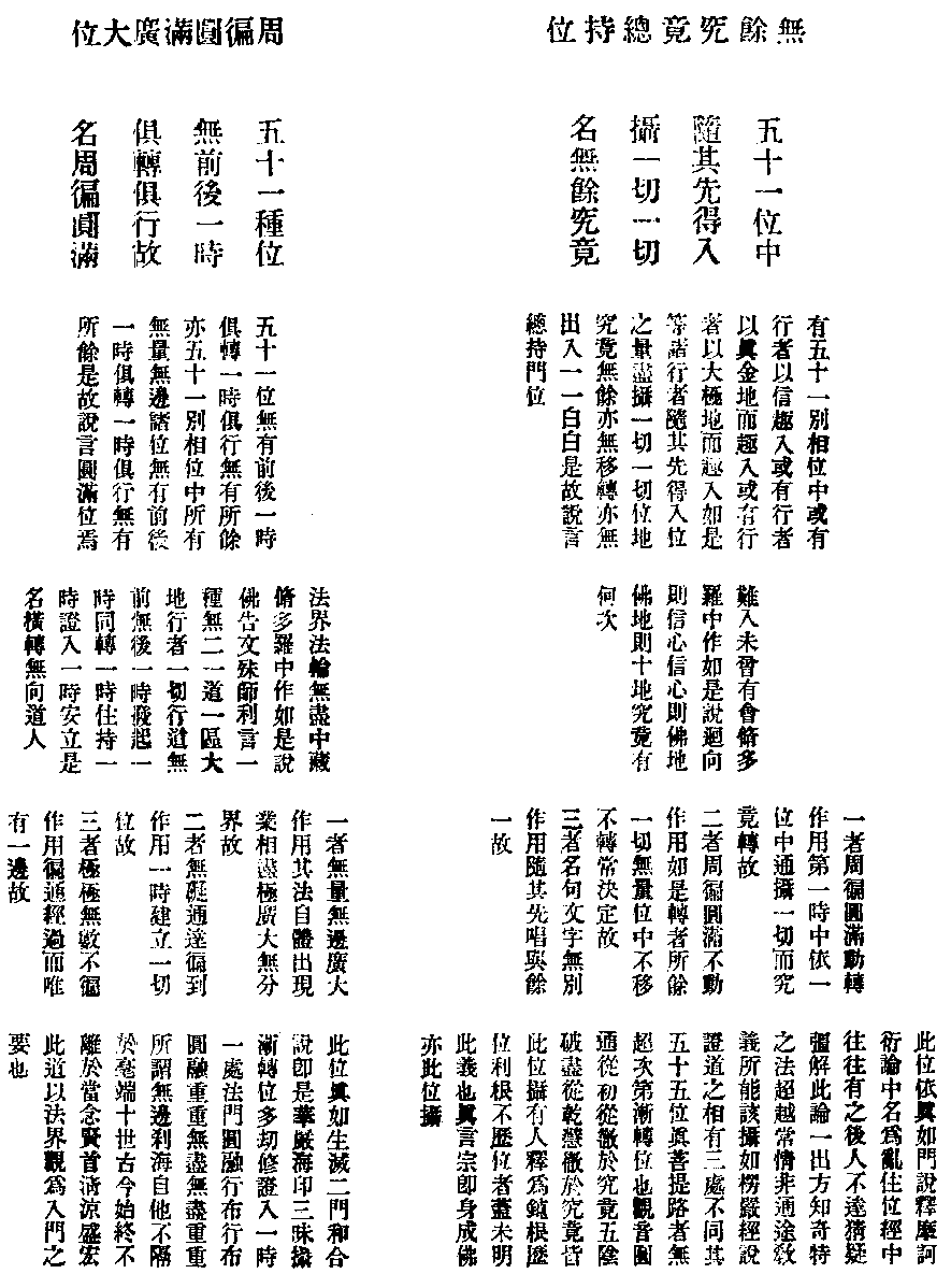 第二十三分 五十一位。各具五十。成二千五百五十法门。位位具足性相本末四法。成立一万二百法。合总数有一万二千七百五十法门。