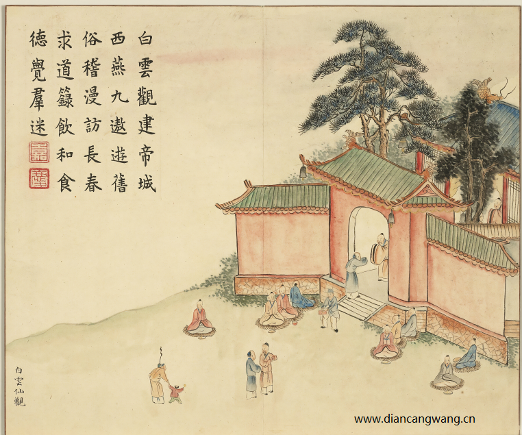 白雲觀建帝城西,燕九遨遊舊俗稽。漫訪長春求道籙,飲和食德覺群迷。