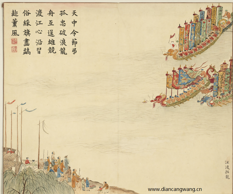 天中令節弔孤忠,破浪龍舟互逞雄。競渡江心沿習俗,綵旗畫鷁趨薰風。