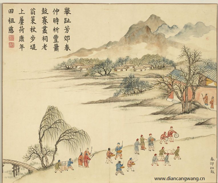 舉趾芳郊春仲時,祈豐蕭鼓賽叢祠。老翁策杖步堤上,屢荷康年田祖慈。