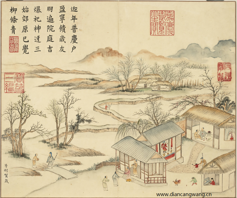 迎年普慶戶盈寧,饋歲友朋遍院庭。吉爆祀神迓三始,郊原已覺柳條青。