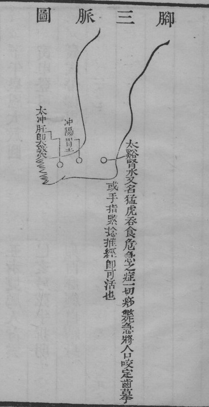 太衝脈足大拇指後二寸。東方木生物之始,不宜衰,則生生之機尚有望也。女人專以此脈為主。